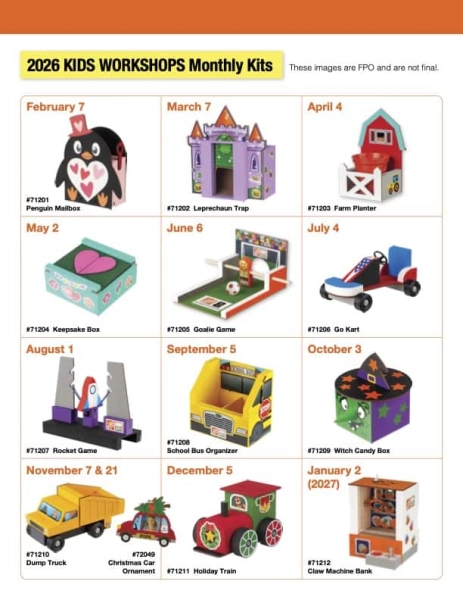 Unleash your child's inner builder at the Lowe's DIY-U Kids' Workshop: Birdhouse! This hands-on workshop provides a fantastic opportunity for children aged 4-11 to learn basic building skills while creating their very own birdhouse. It is a fun, educational, and confidence-building experience they will cherish. Taking place monthly from 10 a.m. to 1 p.m., this workshop offers a safe and engaging environment where kids can explore their creativity. All materials and instructions are provided, ensuring a successful and rewarding project. Plus, each workshop contributes towards earning exciting rewards, including a Jr. Builder apron badge and certificate of Builder Recognition after completing six workshops, and even a Kidsβ Tool Bag after completing twelve! Don't miss this chance to foster your child's love for DIY and provide them with a sense of accomplishment. Spaces are limited, and registration is required. Visit the Lowe's DIY page today to secure your child's spot and discover the joy of building together! If the event is full, you are welcome to pick up a kit to take home starting at 12 p.m..
