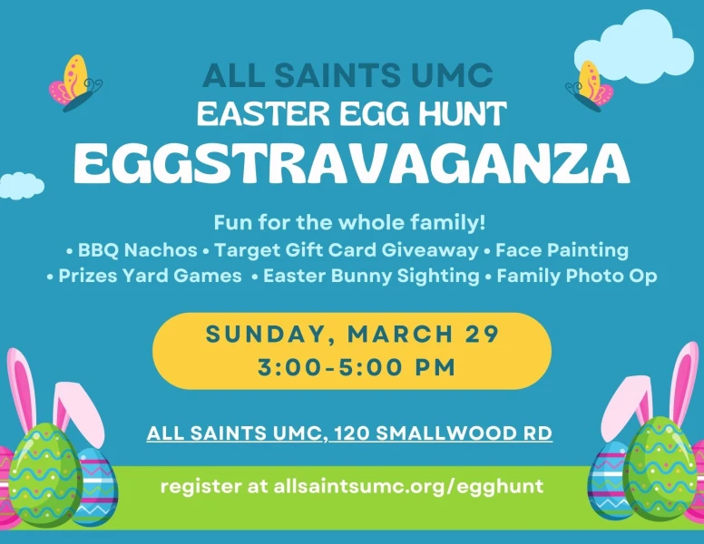 Join the community at Elizabeth Street United Methodist Church in Durham for a delightful morning of celebration and fun. This exciting Easter Egg hunt takes place on Saturday, April 4, 2026, at 10 a.m. sharp. Regardless of the weather conditions, this event will proceed as planned, ensuring that families can enjoy a memorable experience together. Participants can look forward to an abundance of colorful eggs filled with candy and various goodies, making it a perfect outing for children of all ages. Everyone is welcome to attend this festive occasion, so bring your friends and neighbors to partake in the spirit of the season. This event is designed to foster community connections while providing a safe and joyful environment for everyone involved. Whether you are a regular church member or a visitor from the local neighborhood, your presence is highly valued. We encourage you to arrive on time to ensure you do not miss any of the activities. Mark your calendars now for this annual tradition and prepare for a morning of laughter and treats. We look forward to seeing you there to share in this special spring celebration.