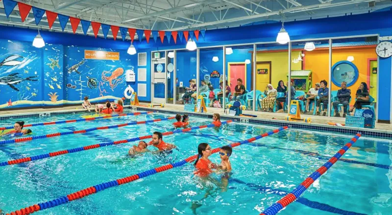 Goldfish Swim School is a premier swim instruction facility dedicated to teaching children aged 4 months to 12 years. With a unique, play-based approach known as The Science of SwimPlay®, Goldfish combines water safety education with fun to foster confidence and cognitive development in young swimmers. 🐠 Programs Offered Swim Lessons: Structured into five progressive levels to accommodate various age groups and skill sets: Mini (4–35 months): Parent-child classes focusing on water comfort. Junior (3–4 years): Beginner to intermediate skills. Glider (4–12 years): Fundamental swimming techniques. Pro (4–12 years): Advanced stroke development. Swim Force (5–12 years): A recreational swim team emphasizing endurance and teamwork. Jump Start Clinics: Intensive sessions held over four or five consecutive days, designed to accelerate skill acquisition and boost water safety awareness. Family Swim: Open swim times for families to enjoy the pool together in a relaxed setting. Parties & Events: Host birthday parties and special events with access to the pool and facility amenities. 🌊 Facility Features Shiver-Free Pools: Indoor pools maintained at a comfortable 90°F year-round. Small Class Sizes: Maintaining a 4:1 student-to-teacher ratio to ensure personalized attention. Safety Protocols: Certified lifeguards trained through the International Lifeguard Training Program™ are always on duty. Parent Viewing Areas: Air-conditioned galleries equipped with free Wi-Fi for parents to observe lessons comfortably.